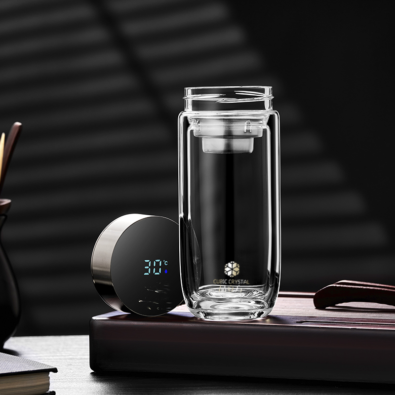 智能測溫 高硼硅雙層玻璃杯